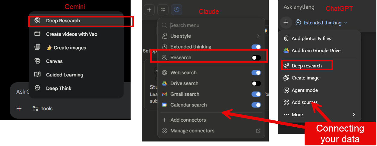 人工智能的最大用途是实际指导和获取信息,有两种方法可以显著提高这类问题的结果质量:触发深度研究模式和/或将人工智能连接到您的数据(如果您愿意这样做)。