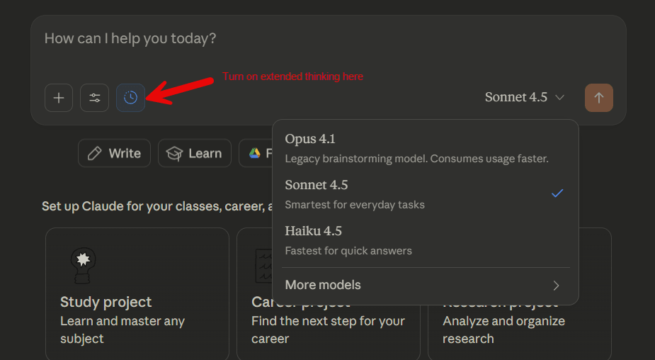 最后,Claude 让选择模型变得相对容易。你可能想用 Sonnet 4.5 来处理所有问题,唯一的问题是你是否选择扩展思维(针对更难的问题)。目前,Claude 还没有与 GPT-5 Pro 相当的版本。
