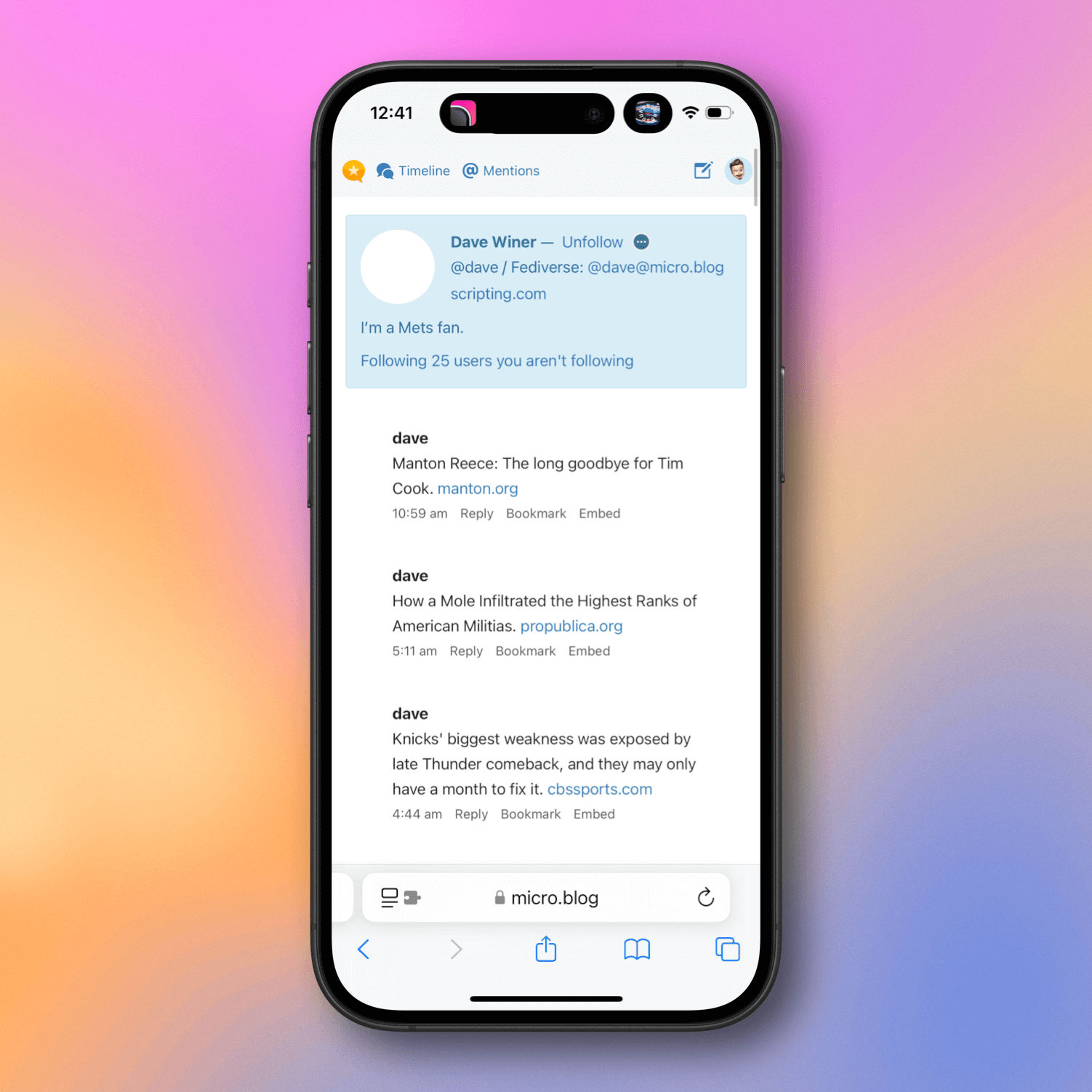 Dave Winer 在 Fediverse 上的链接帖子。 ⌘
