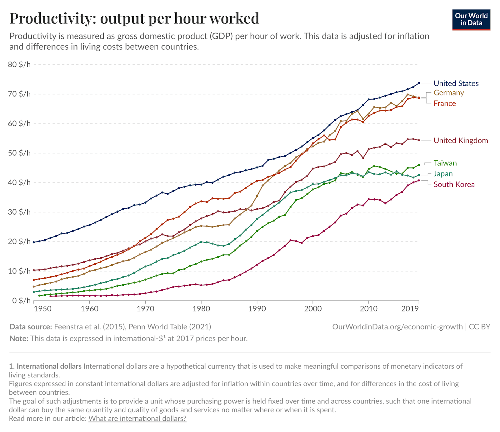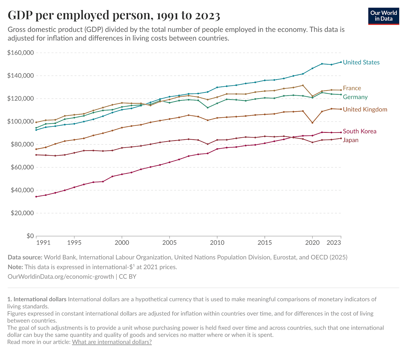 这不仅仅是生育率或老龄化问题;日本工人的生产力较低: