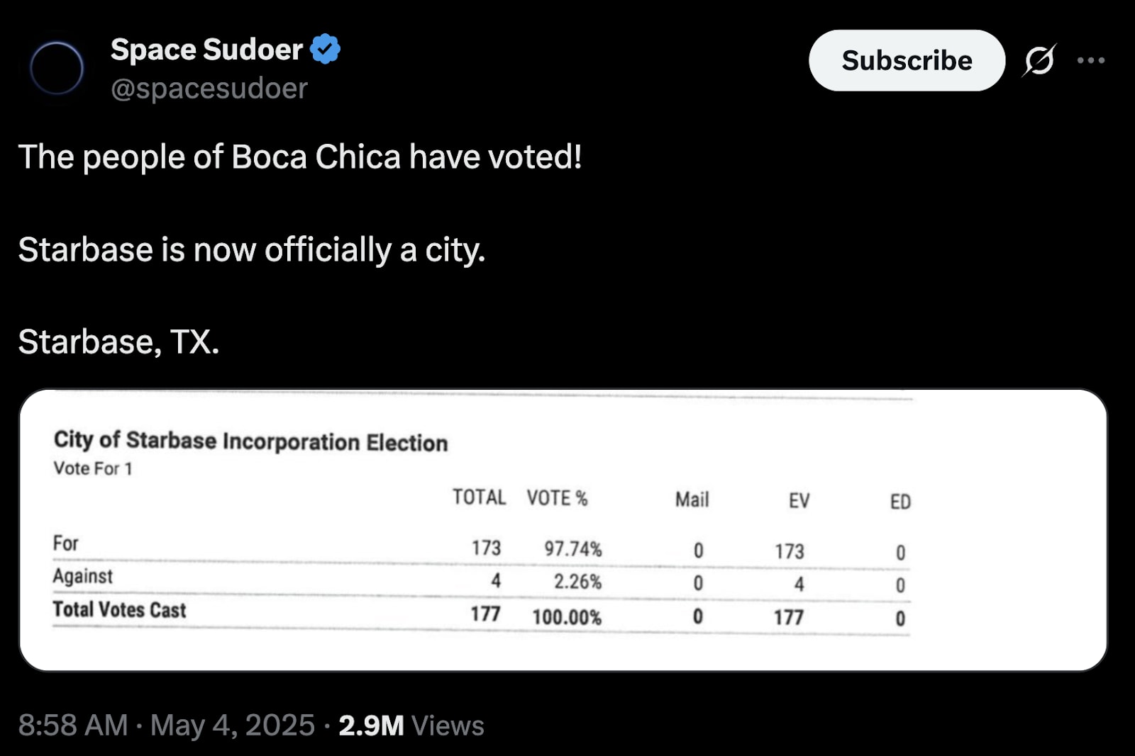 既然我们谈到了太空:今年1月16日,我们宣布博卡奇卡应该成为一座城市。五月,它就真的建成了! 2