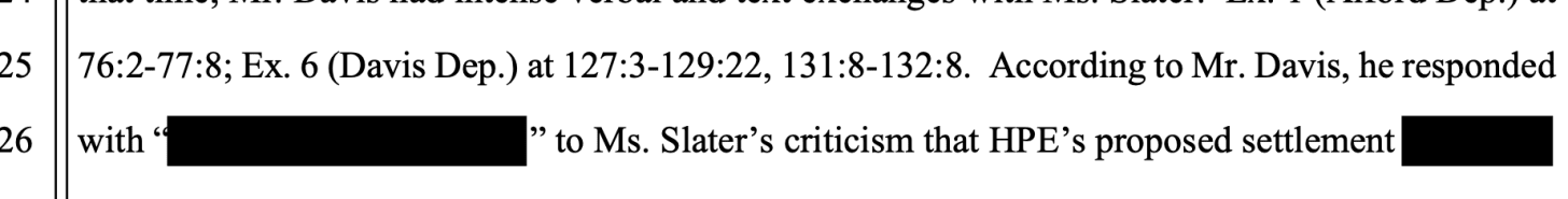 他们确实这么做了。由韦瑟领导的州执法人员于周五提交了一份鲜为人知的文件,指控这笔交易中存在广泛的腐败行为,这是部分调查结果。这份文件请求法官不要批准与HPE达成的和解协议,理由是该协议存在多项违法行为和试图欺骗法庭的行为。文件的大部分内容已被涂黑,但从中可以看出,同一批受雇于Ticketmaster的游说者也参与了这笔交易。文件还表明,美国企业界的关键人物,嗯,相当肮脏。