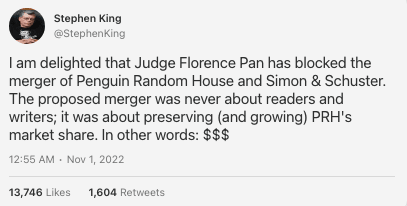 这两起案件之间有着直接联系。例如,多西领导了司法部团队,挑战企鹅出版社与西蒙舒斯特出版社的合并案。今晚,她告诉我,她之所以关注此事,是因为“该领域重要参与者数量的减少,引发了人们对其对创意产业从业人员和就业的影响的严重质疑,也引发了对受众的担忧,他们可能会发现能够突破的新声音越来越少,总体上的选择也越来越少。”换句话说,过去几年培养的人才现在已经准备好了。