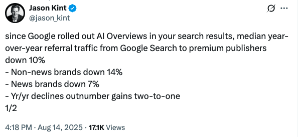 正如《经济学人》所指出的,谷歌新推出的 AI Now 聊天机器人引擎(它几乎被放置在所有搜索结果之上)正在 摧毁开放网络。