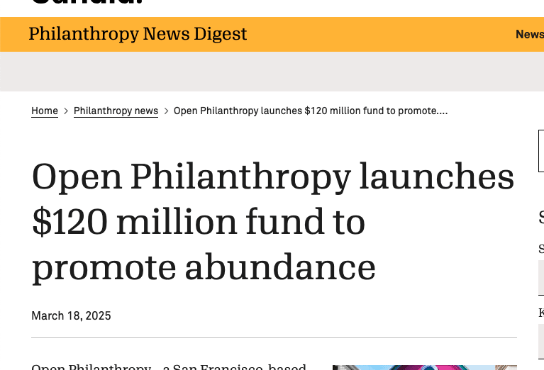 它的意义远不止一本书。自2022年富有的自由意志主义捐赠者查尔斯·科赫(Charles Koch)支持“丰盛”(Abundance)框架以来,已有数千万美元甚至数亿美元涌入这个世界。例如,Facebook联合创始人达斯汀·莫斯科维茨(Dustin Moskovitz)最近承诺捐赠1.2亿美元。