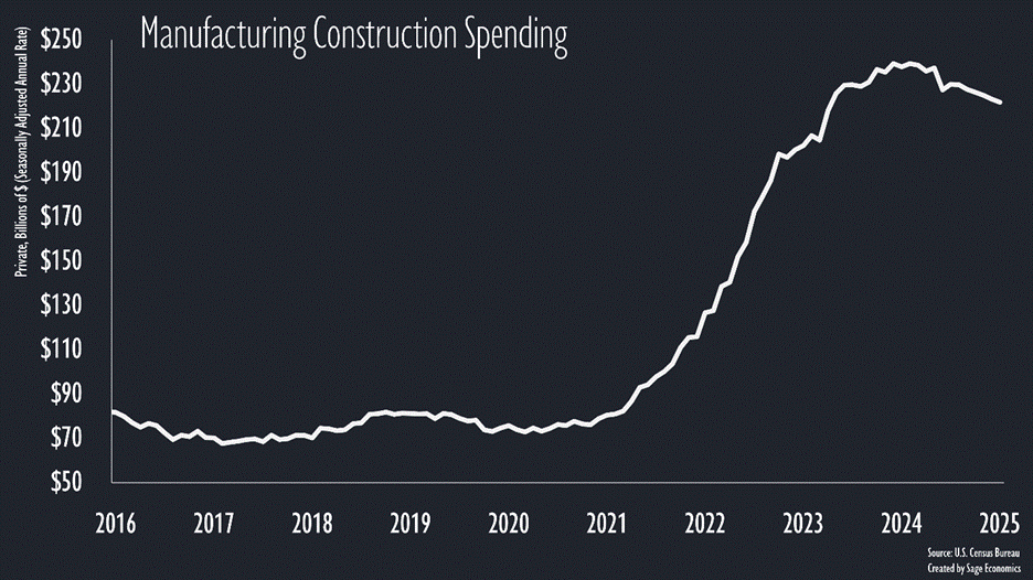 由于供应链挑战和发货延误,以及联邦激励措施的刺激,企业开始将生产转移回美国,制造业相关的建筑业在 2021 年至 2024 年间激增。