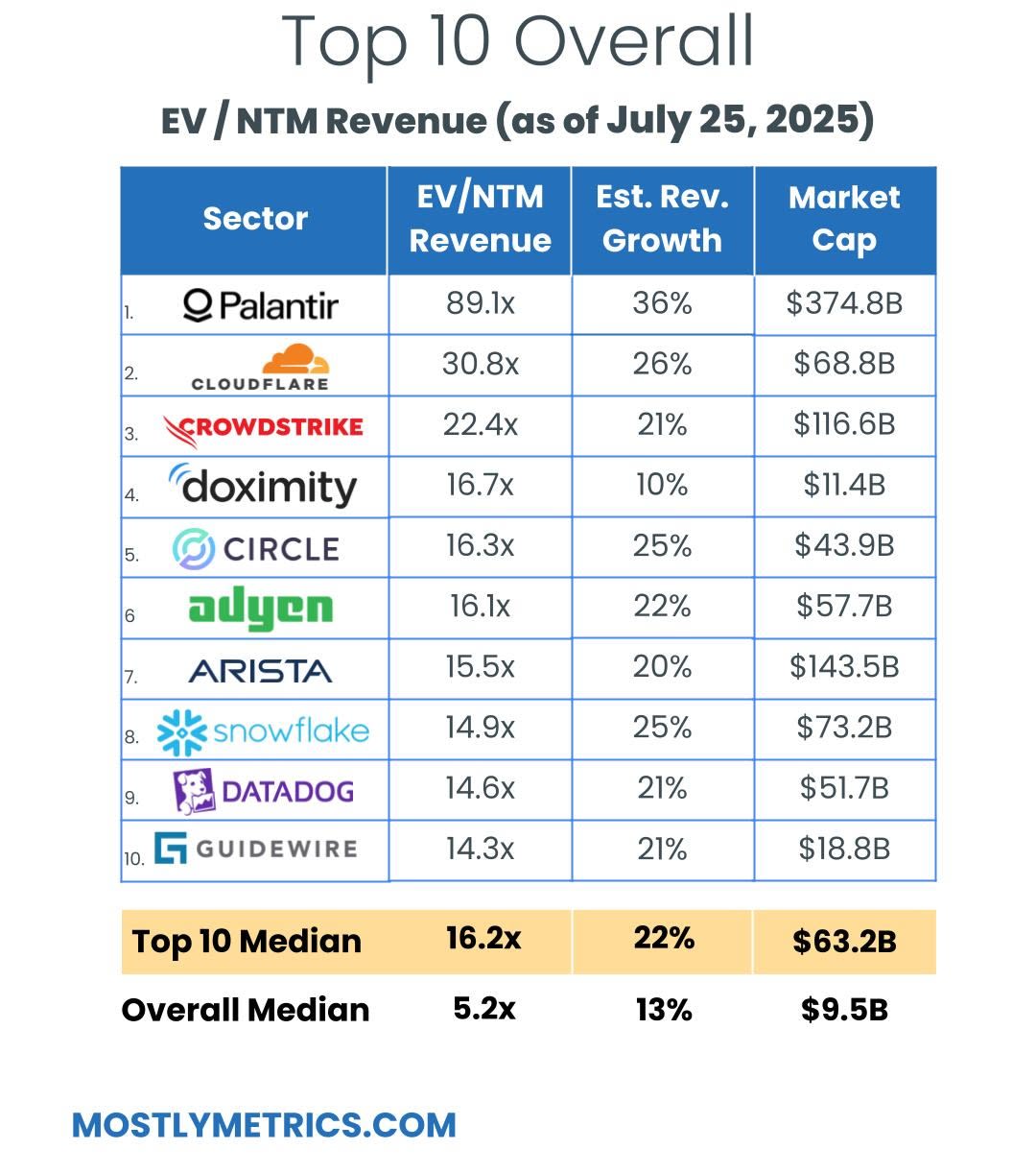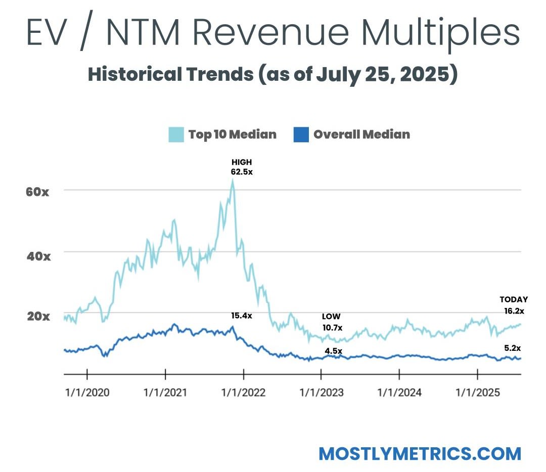 从历史上看,10 倍 NTM 收入倍数一直被视为专为最优秀的公司保留的“溢价”估值。