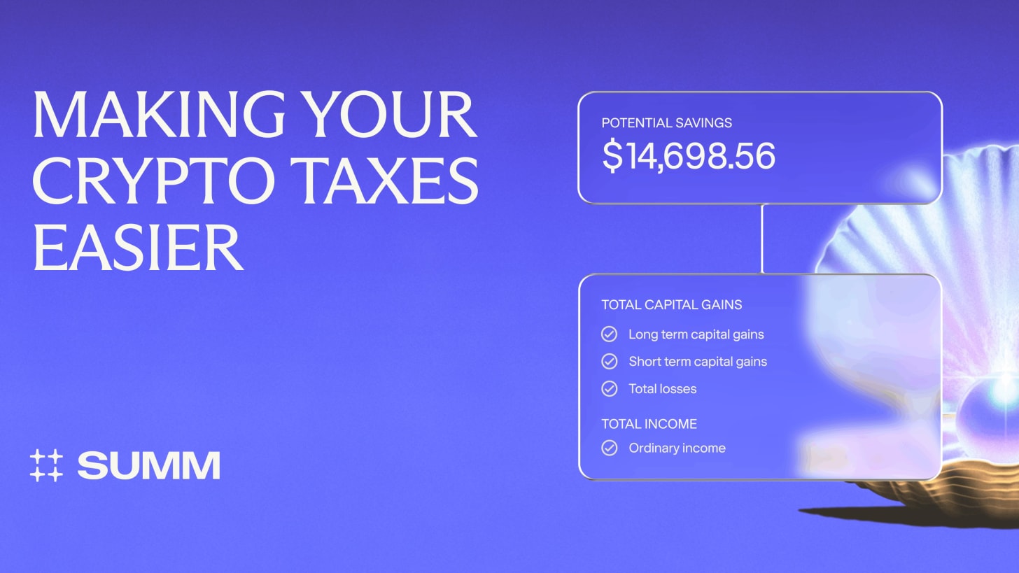 加密货币税务应该简单明了,而不是靠猜测。Summ (原名 Crypto Tax Calculator)支持 TurboTax,可轻松追踪您在 3500 个交易所、钱包和加密货币集成中的成本基础——并支持 DeFi、NFT、质押和空投。