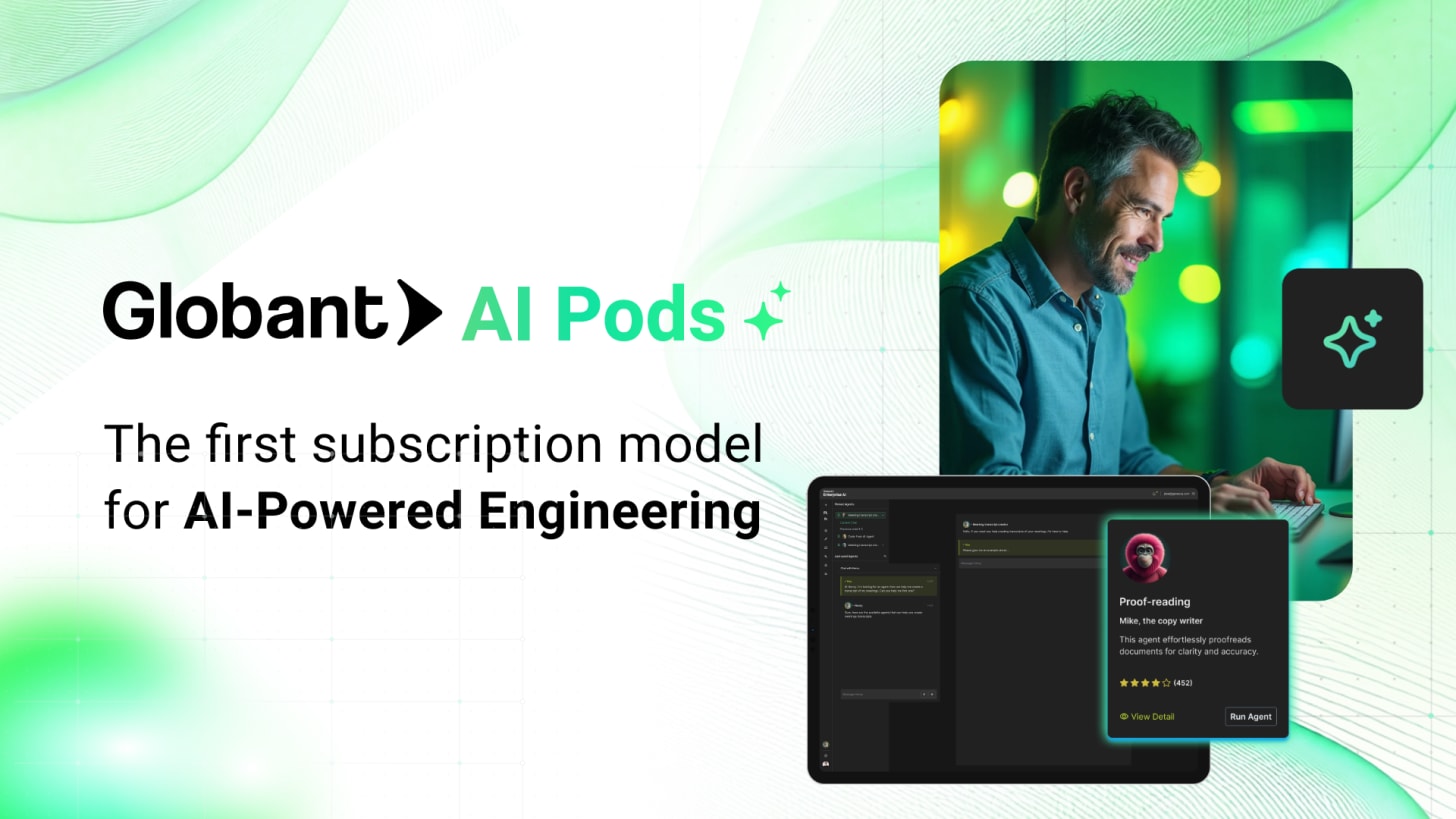 这一愿景在 Globant 的 AI Pods 中得以实现。AI Pods 采用订阅模式,将智能 AI 与人工监督相结合,从而实现可衡量的业务成果。每个 Pod 都像一个专属的 AI 增强团队:安全可靠、可组合,并随着新模型的出现而持续改进。