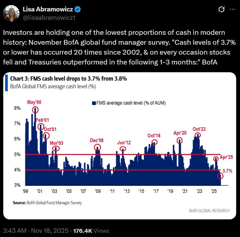 但我可能错了。或许还有更传统的“泡沫”机制在起作用——比如羊群效应、投机、害怕错过机会的心理等等——这些因素可能正在推动一些真正的AI投资。如果是这样,我们需要警惕的一个警示信号就是投资者流动性枯竭。
