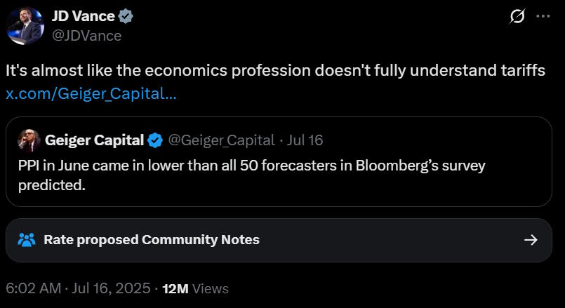 但经济学家们对关税的通胀效应的看法是否错误呢?JD Vance似乎认为如此: