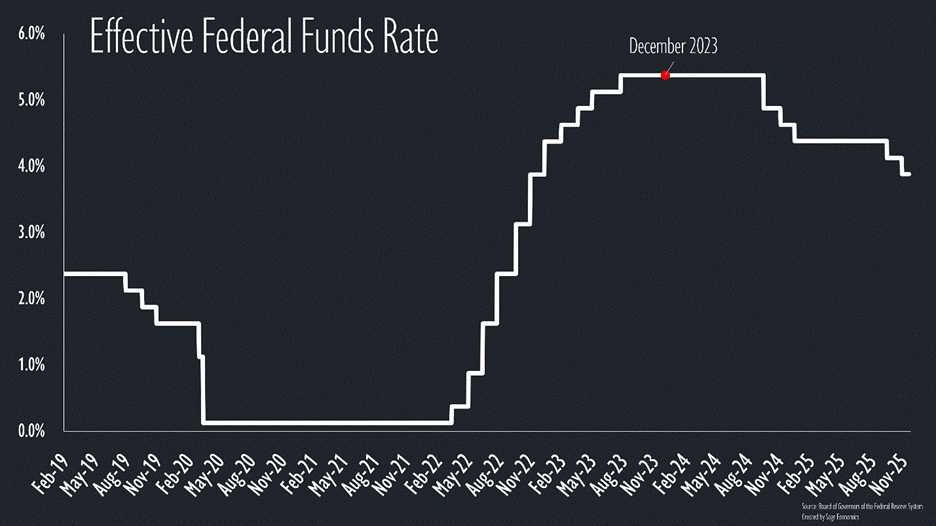 不过,大部分责任在于利率,利率从 2022 年初开始上升,到 2023 年 12 月,利率已达到数十年来的最高水平。