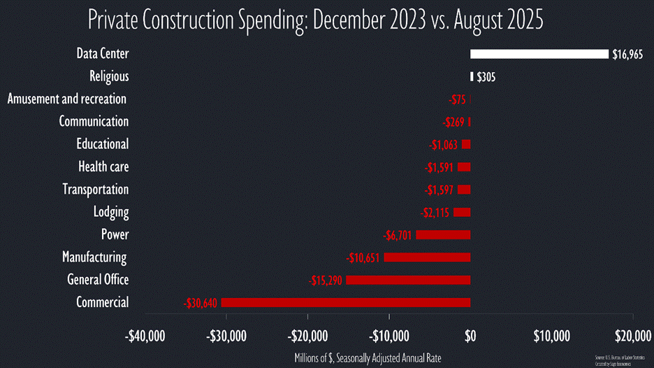 尽管美联储自2024年第三季度以来已多次降息,但借贷成本仍然过高。关税和不确定性加剧了这一问题。也就是说,私人非住宅活动可能需要一段时间才能复苏。