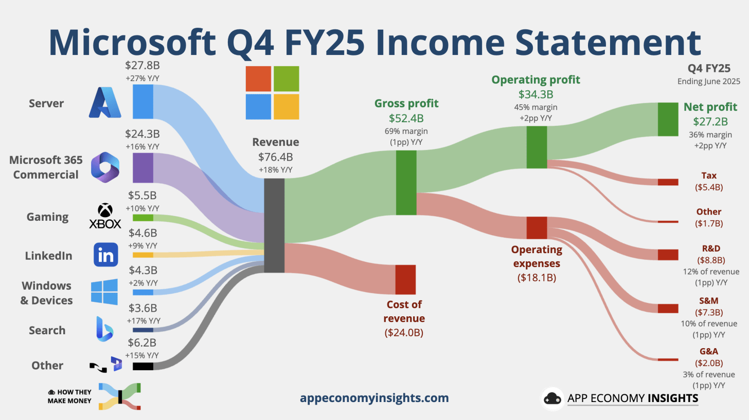 🧠 OpenAI 的影响:17 亿美元的“其他费用”在很大程度上反映了微软在权益会计下在 OpenAI 损失中所占的份额,随着 OpenAI 积极向 GPT-5 扩展,这是一个不断增长的项目。