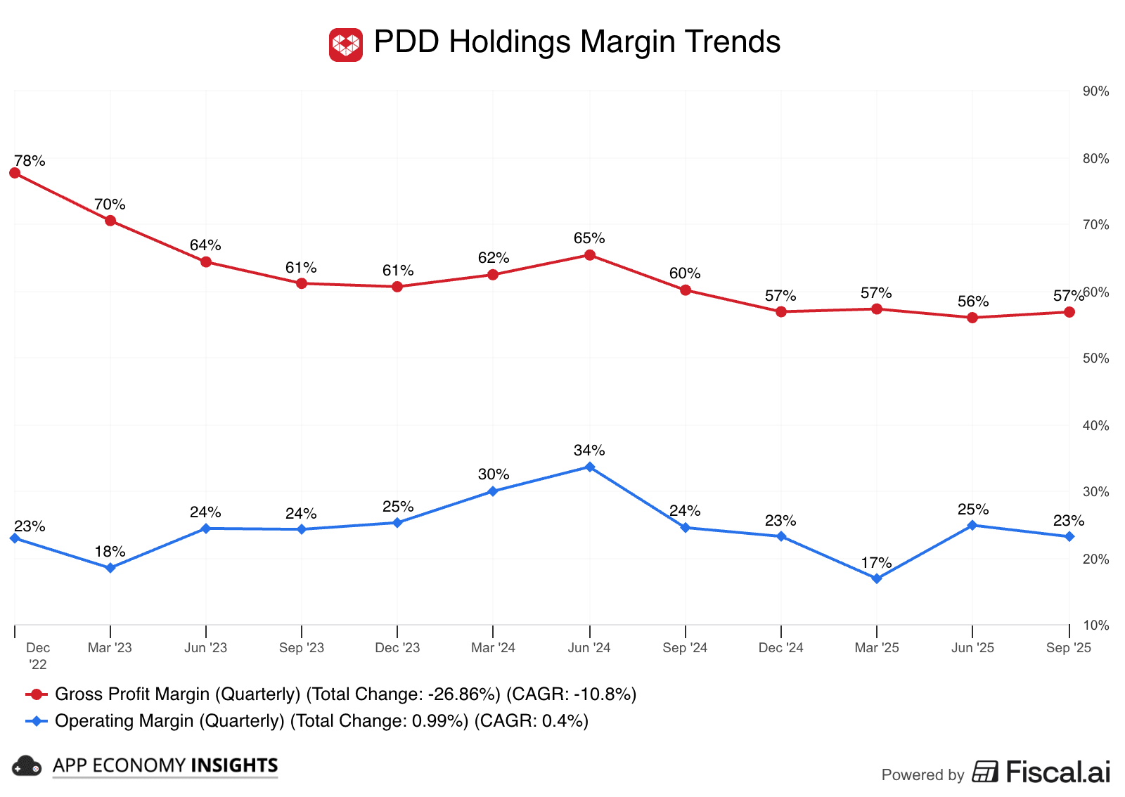 PDD继续推进“千亿支援计划”的长期投资,研发支出飙升41% 。在海外, Temu部门正在稳定其在美国的业务(月活跃用户在第二季度大幅下滑后有所回升),但目前正专注于拓展欧洲市场,以抵消美国最低限度税收豁免政策结束带来的损失。