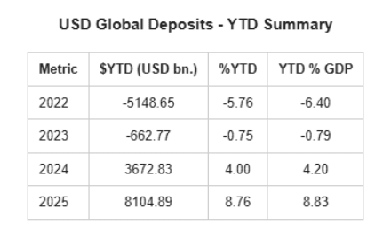 到 2025 年,全球财政净赤字和私营部门杠杆(即:印钞)为全球经济增加了 8.1 万亿美元(!)的新通胀货币。
