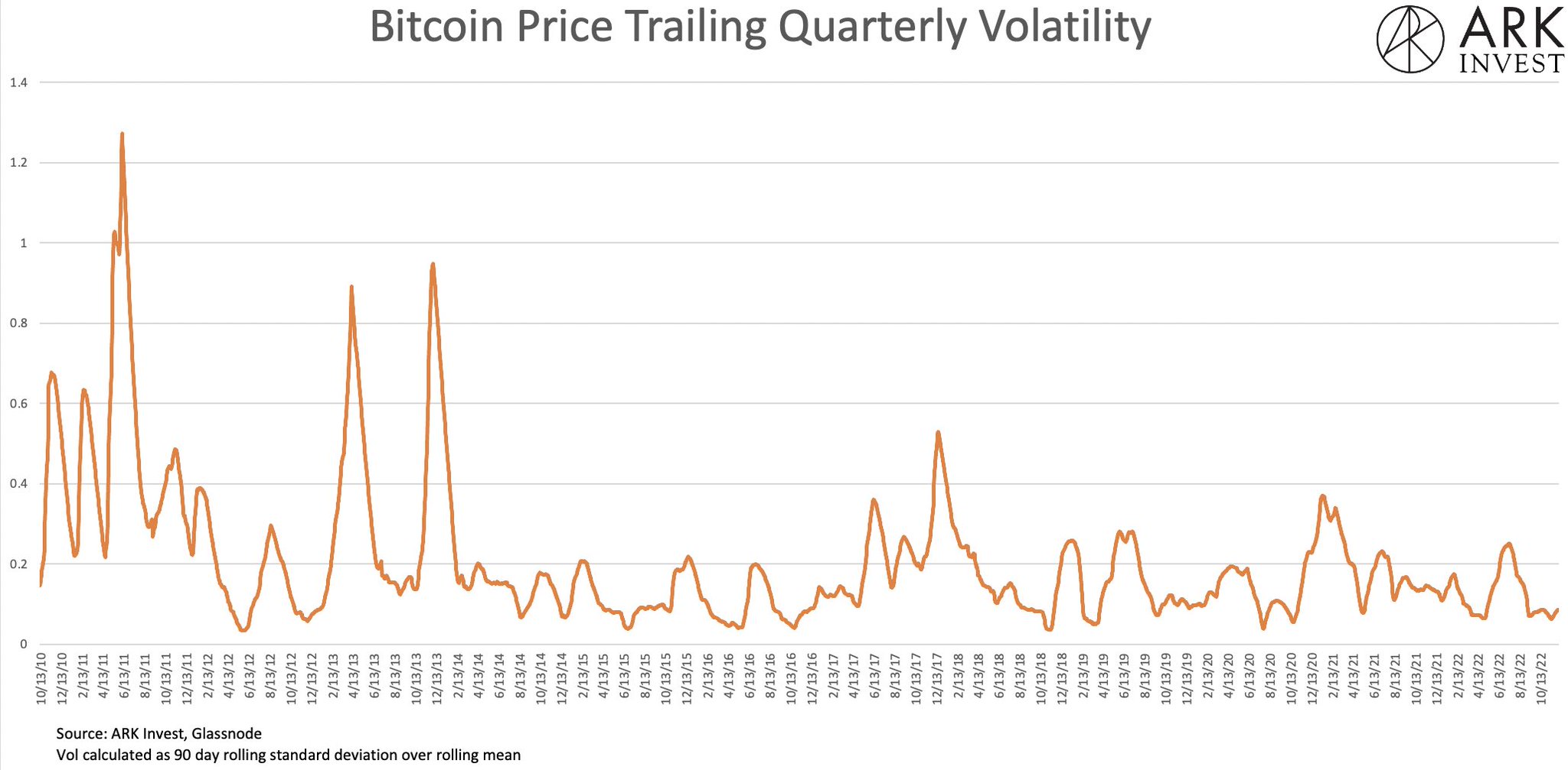 Brett Winton: 关于比特币出奇平静的价格走势: FTX 内爆, 整个生态系统的交易对手破产, 不确定性飙升; 显然,这转化为价格波动的高度上升……