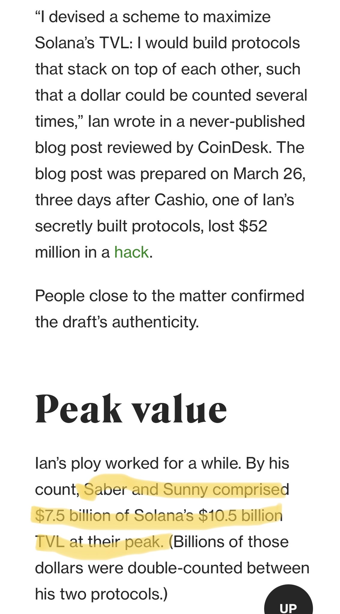 That 70% of Solana’s peak TVL sat in a nested set of 11 protocols designed to game the metric (and sock-puppeted by a single developer)