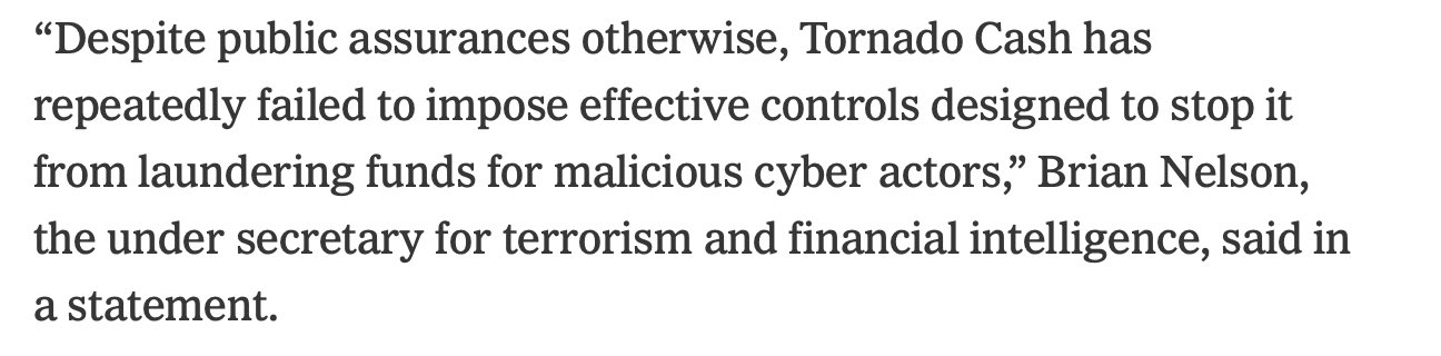 原推:Tornado cash, the smart contract, made “public assurances … [that it] would impose effective controls designed to stop it from laundering funds for malicious cyber actors”?