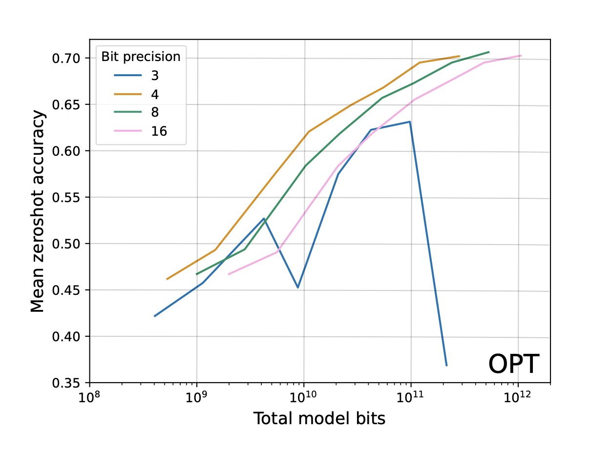 原推:Suggests that a language model inferring at 4 bit precision can deliver ~same performance as an 8 bit model at 2x the memory/latency