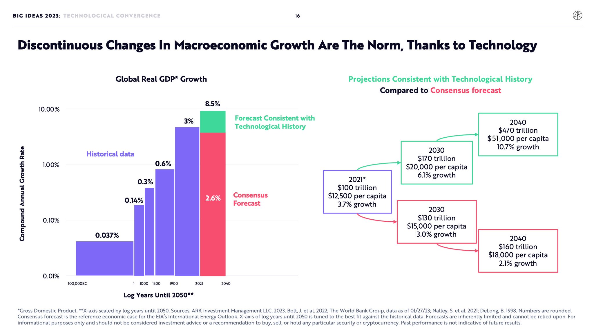Brett Winton: 随着这些技术的叠加,我们相信它们将带来深刻的生产力进步。 尽管许多人没有意识到,但增长率的深刻变化与技术经济史是一致的。