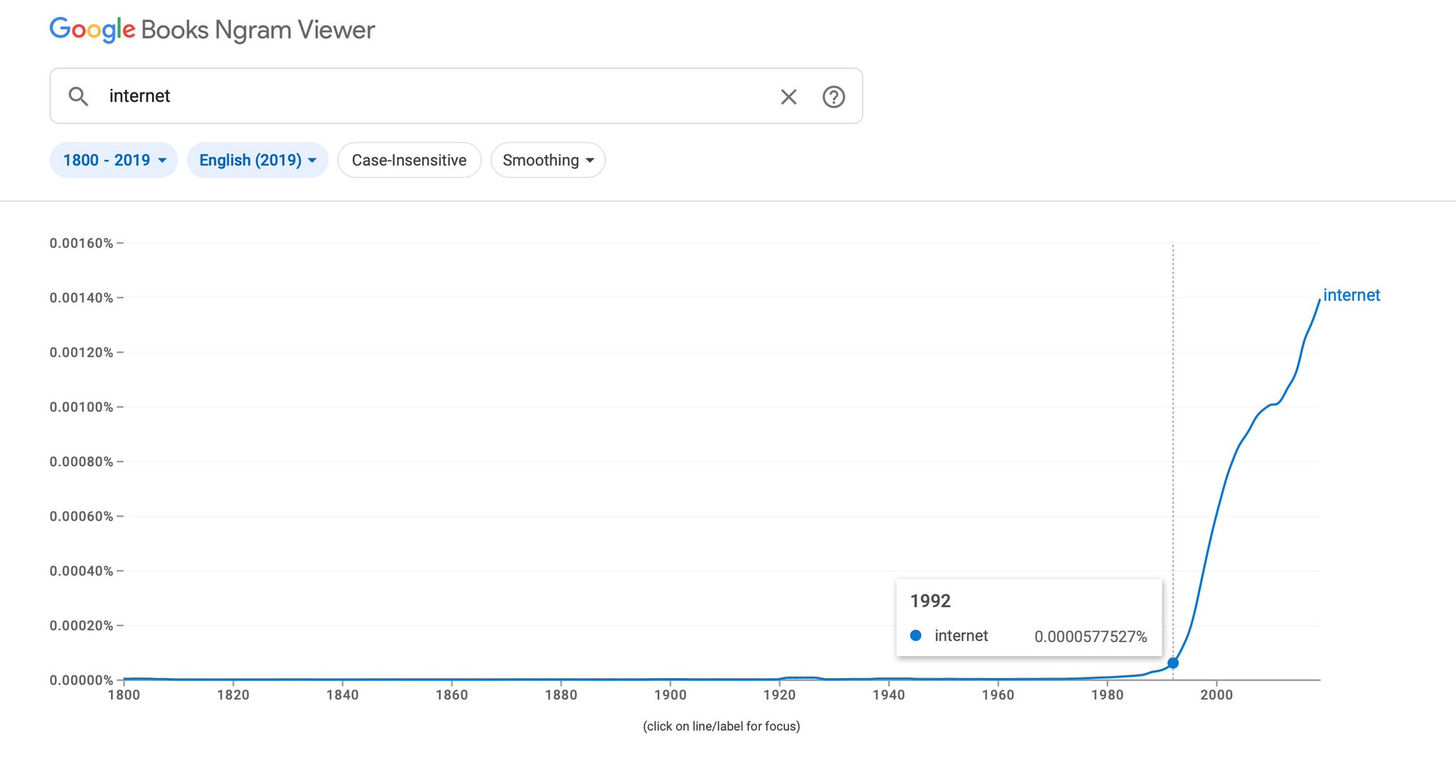 The knee of the curve in the internet’s penetration of culture corresponds almost exactly to the transition to text + graphics