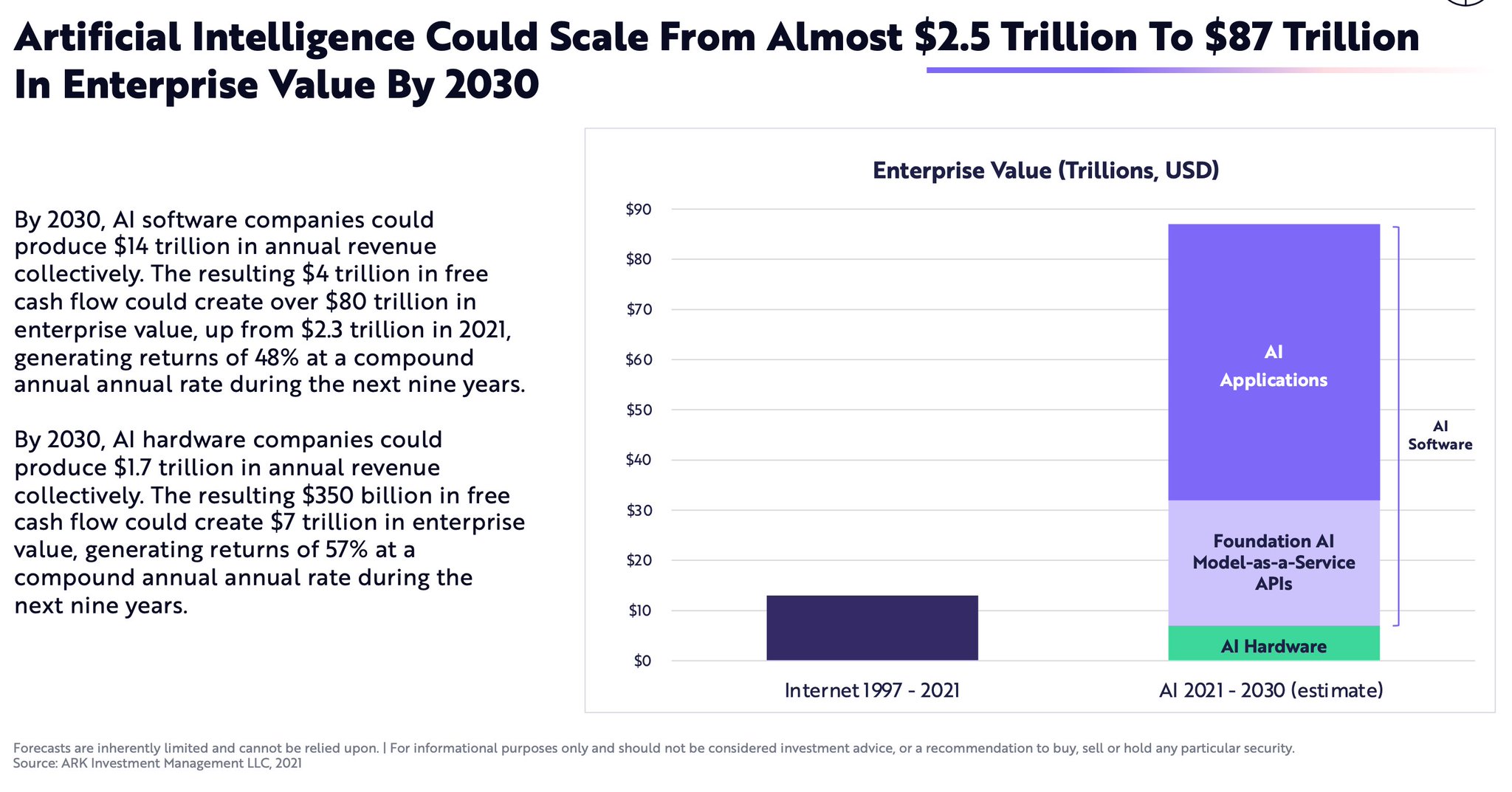 Brett Winton: @cscarroll 可能对解决机器人出租车没有帮助 但让特斯拉运营 AI 即服务,与其他基础模型竞争(我们以 10 万亿美元的潜在企业价值衡量一个机会) 考虑到他们的 AI 规模要求,具有战略意义