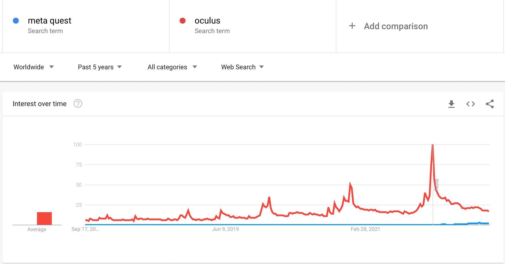 原推:@GrousARK @_jonnymo_ @Yvesb @GoogleTrends @ShortsYouTube @NickMiaritis @garyvee @vayner_x don’t forget the rebranding! oculus search volume is falling off because everybody is searching for the… ok maybe not