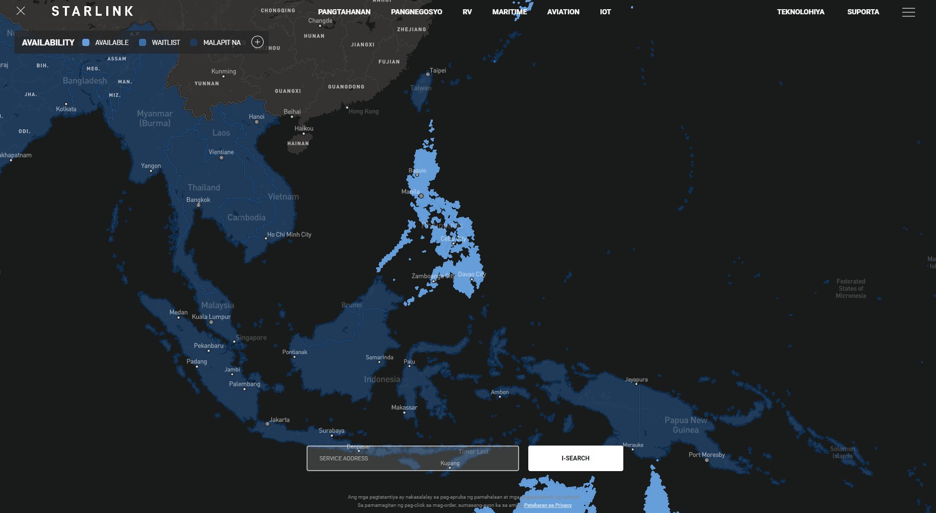Elon Musk: 埃隆·马斯克转发推文: 可用的 na ngayon ang Starlink sa Pilipinas → starlink.com/map Posted on 2023-02-22 原推: Elon Musk retweeted: Available na ngayon ang Starlink sa Pilipinas → starlink.com/map https://twitter.com/elonmusk/status/1628223584417255426