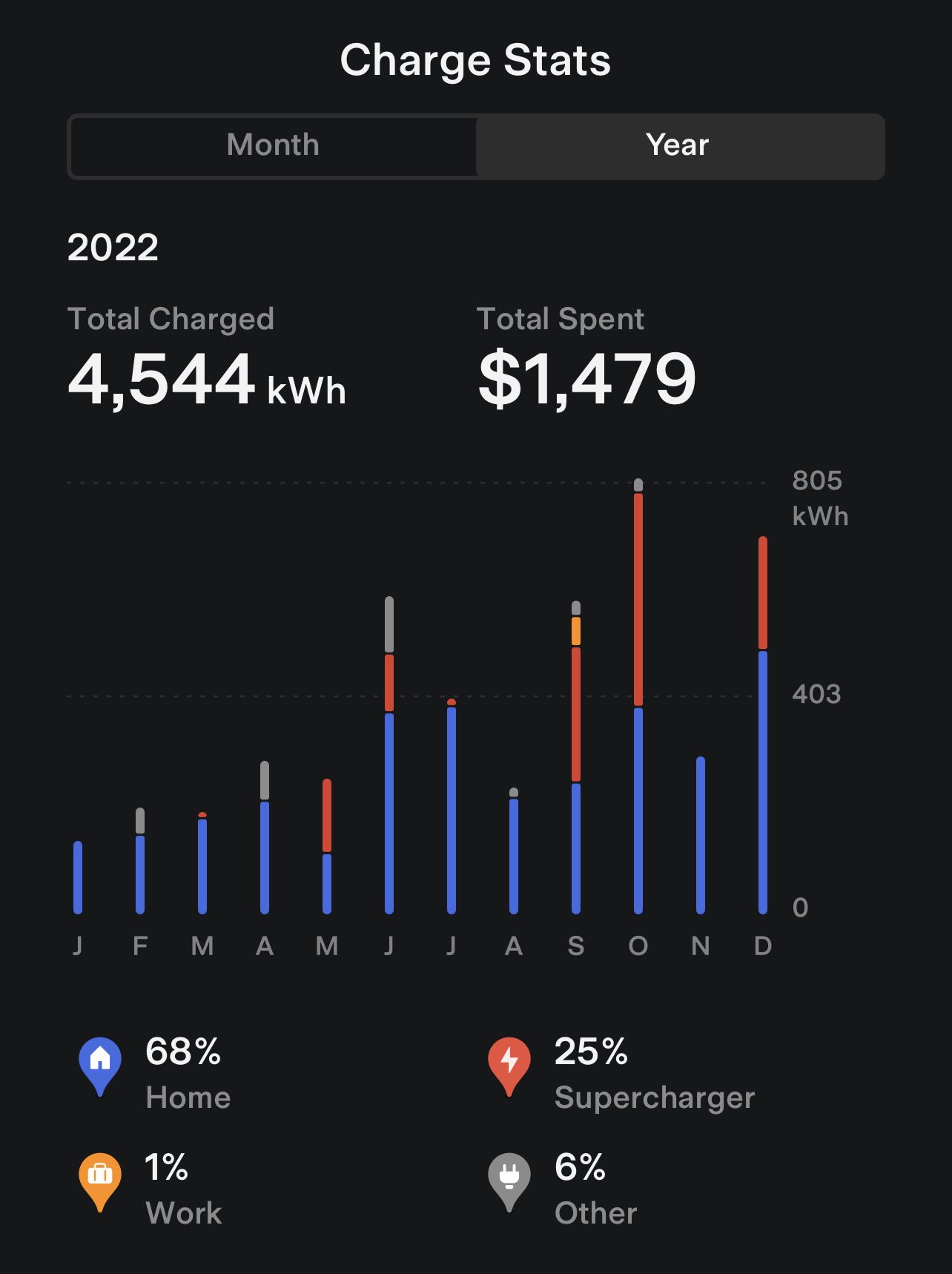 View your charging history & savings for the full year in the Tesla app