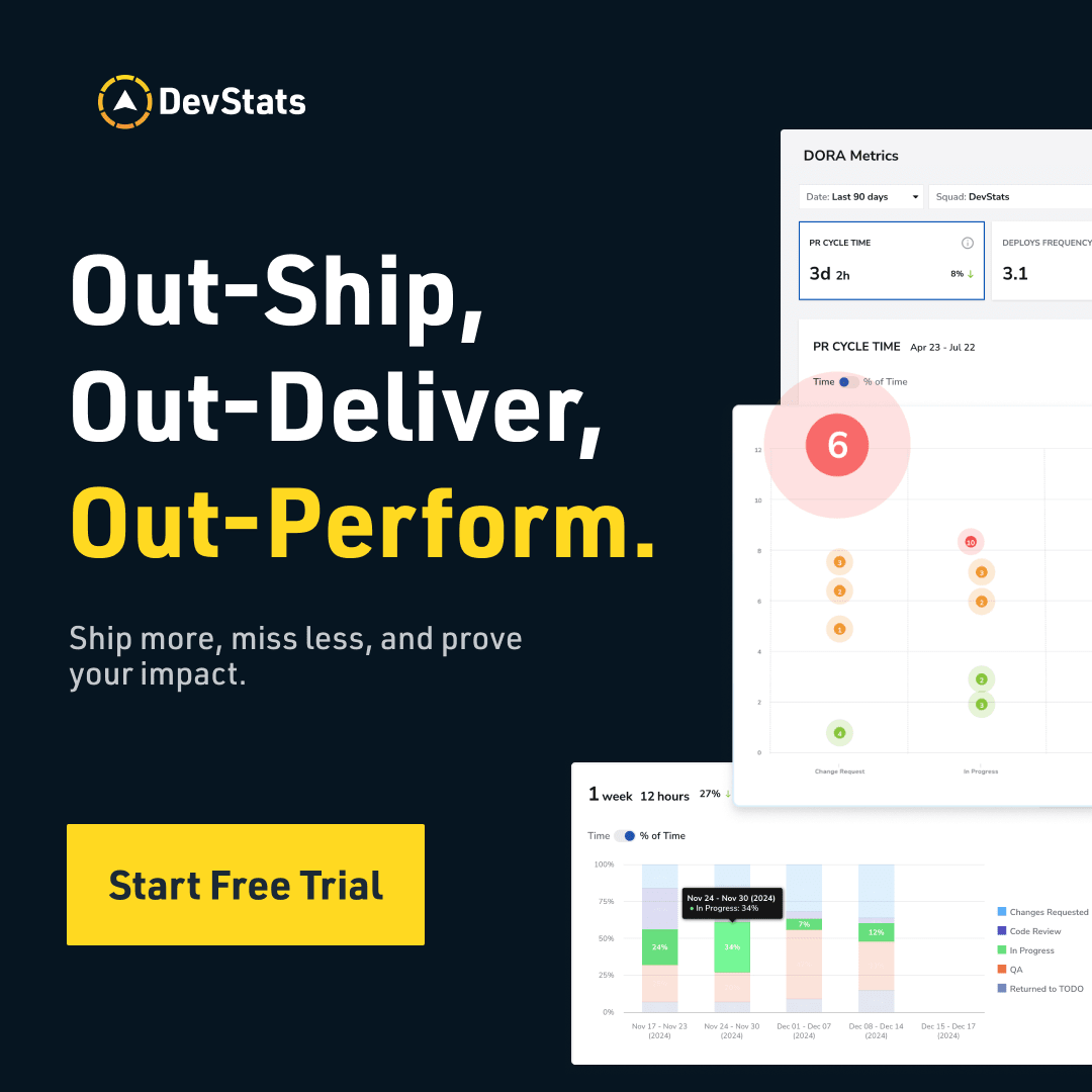 DevStats 帮助工程领导者解读指标、体验流程并更快地交付,以便每次发布都能带来真正的业务影响。