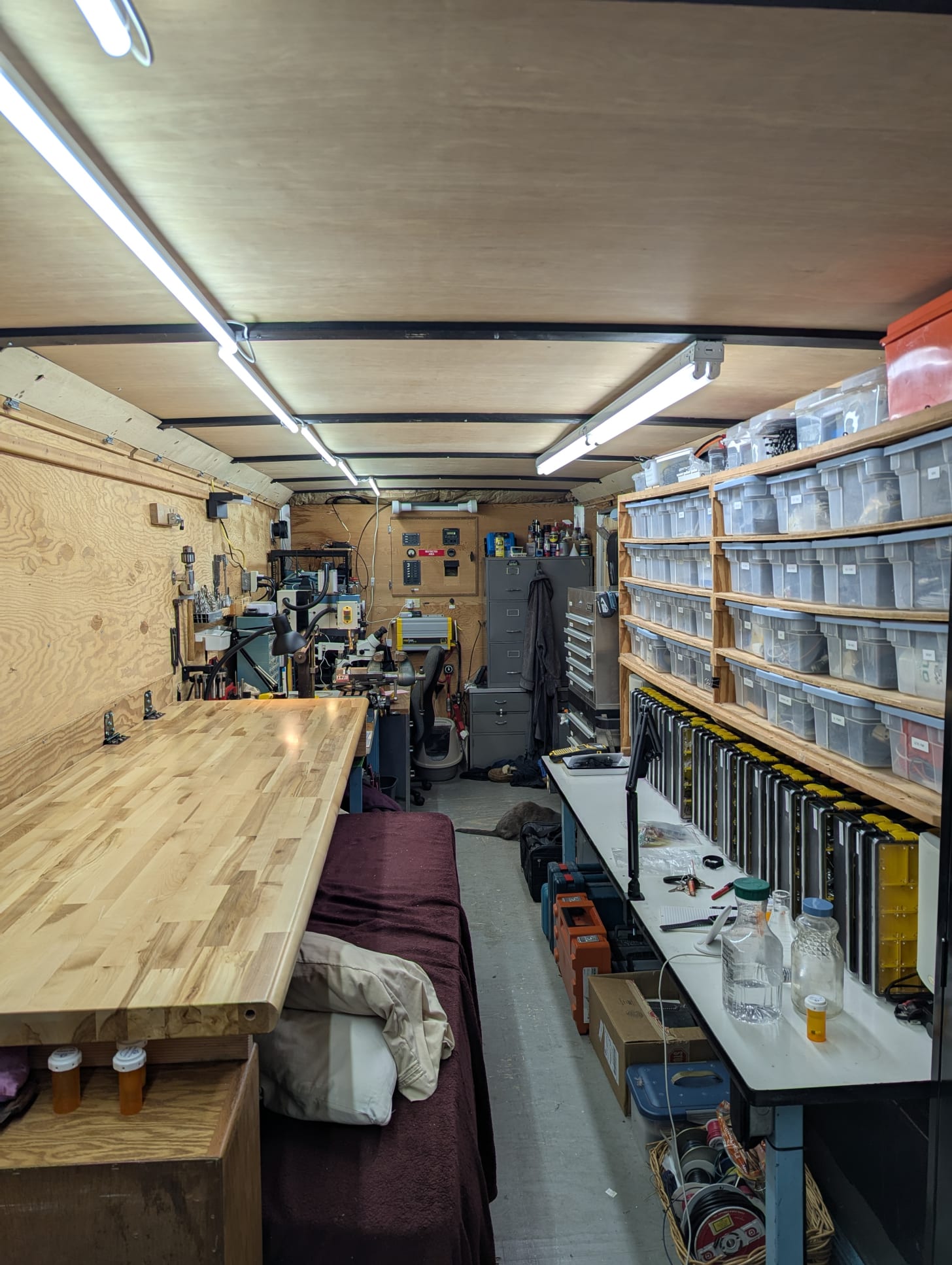 这些年来,我多次推荐过这些价格实惠的20瓦LED店铺照明灯。每当收到读者购买后发来的邮件(附图片)时,我都激动不已。这些灯长4英尺,亮度2200流明,色温6500K的超亮白光灯具,可以菊花链连接(最多8盏),售价43美元——每盏只需7美元多一点!几周前,我收到了老朋友史蒂文·罗伯茨(一位德高望重的高科技爱好者)的邮件。他把这些灯装在他的移动商店里,非常喜欢。看起来真棒,史蒂夫!我也喜欢你的整理系统!