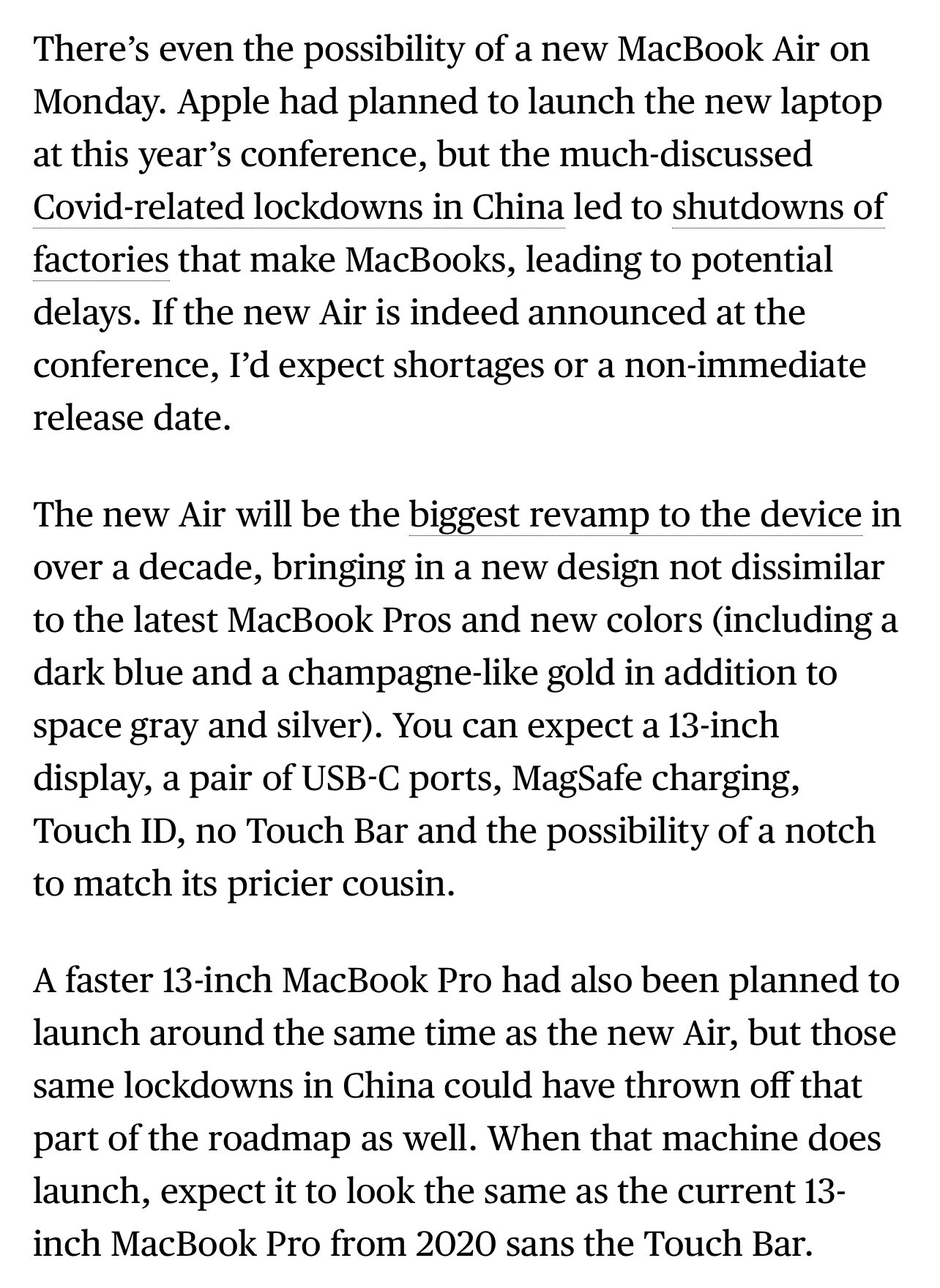 原推:Here’s what I said about the MacBook Air and possibility of a new 13 inch MacBook Pro bloomberg.com/news/newslette…