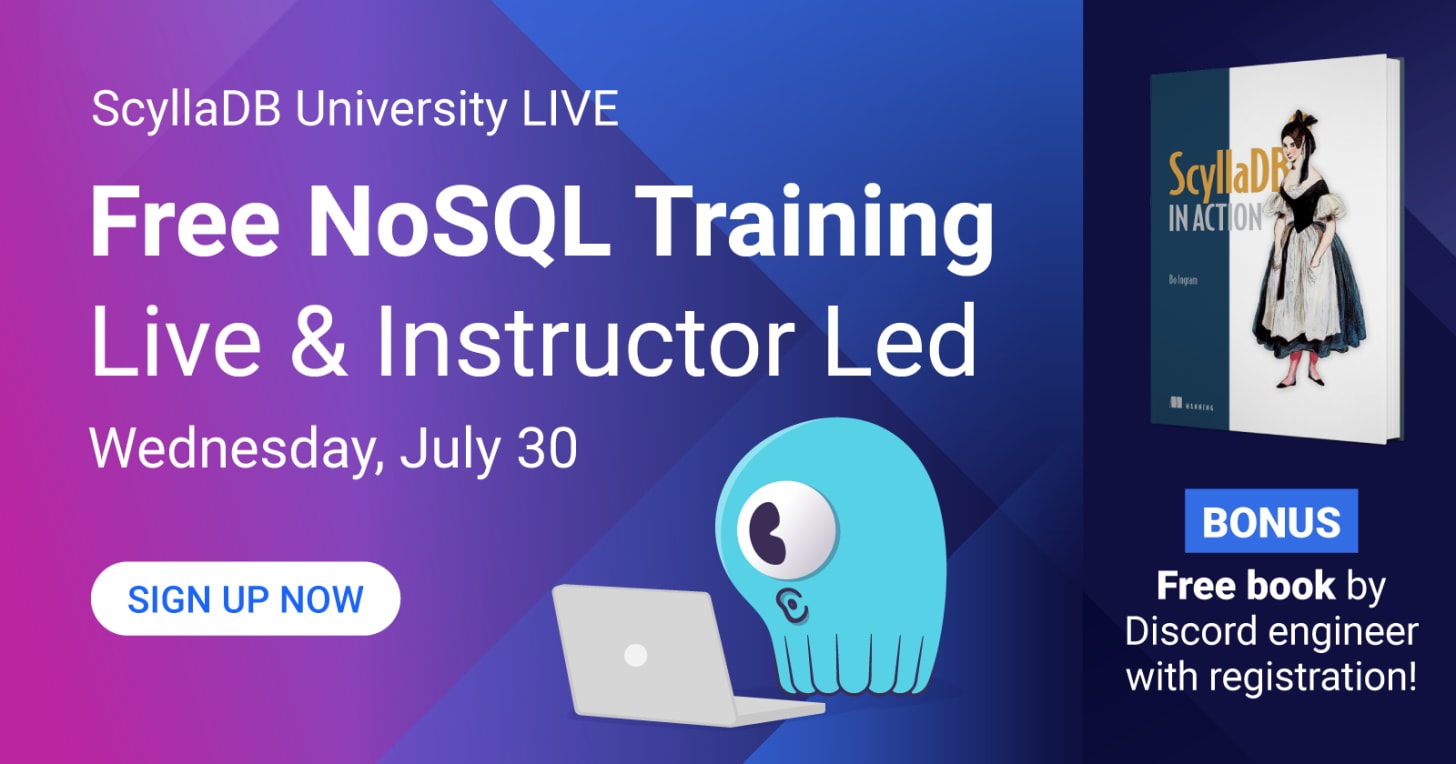 奖励:注册者可获得 Discord 高级工程师 Bo Ingram 编写的《ScyllaDB in Action》电子书。