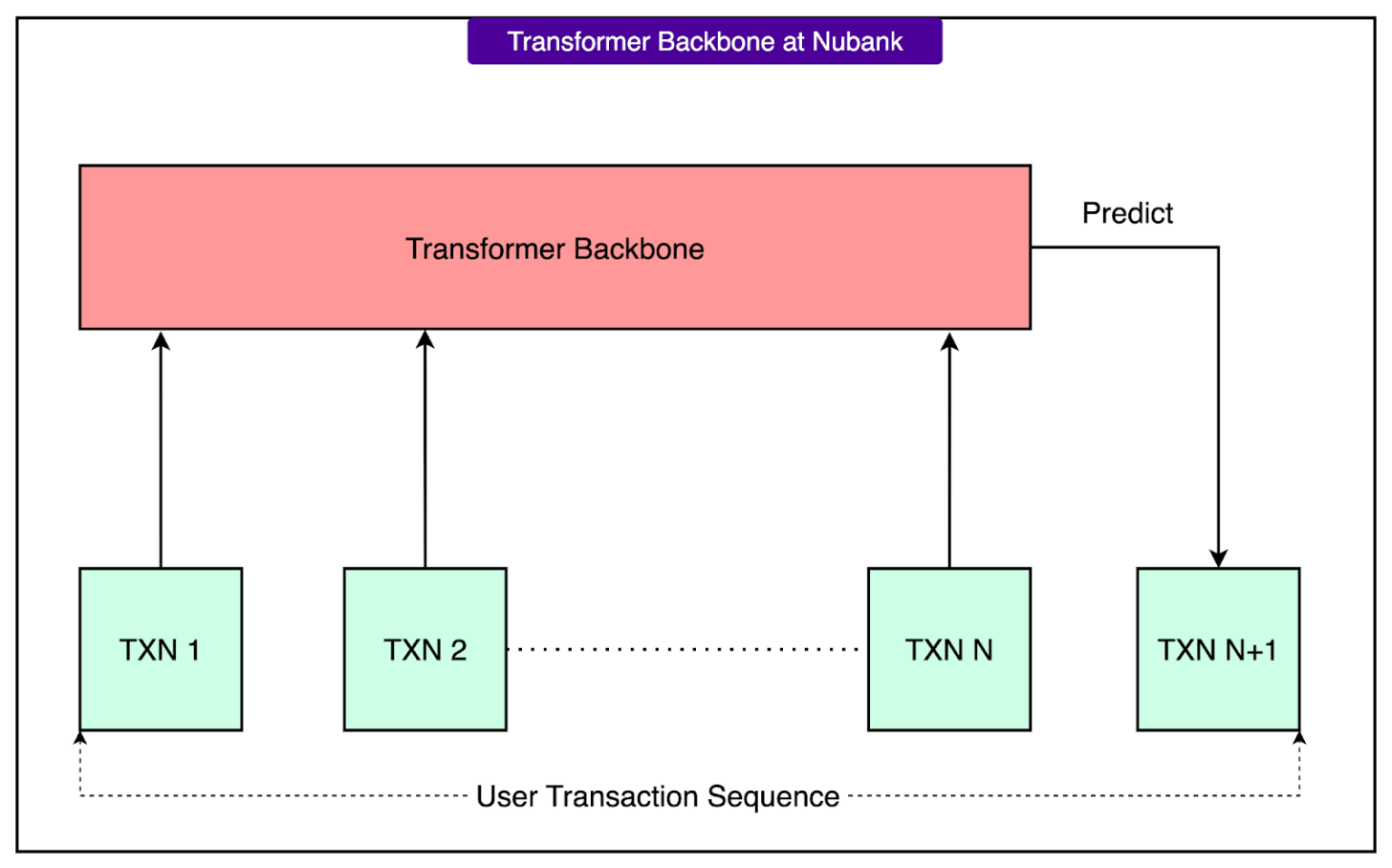 如上所述,Nubank 工程团队使用自监督学习来实现这一目标,这意味着模型直接从交易序列中学习,而无需任何手动标记。这种方法使系统能够充分利用数百万用户的海量历史交易数据。