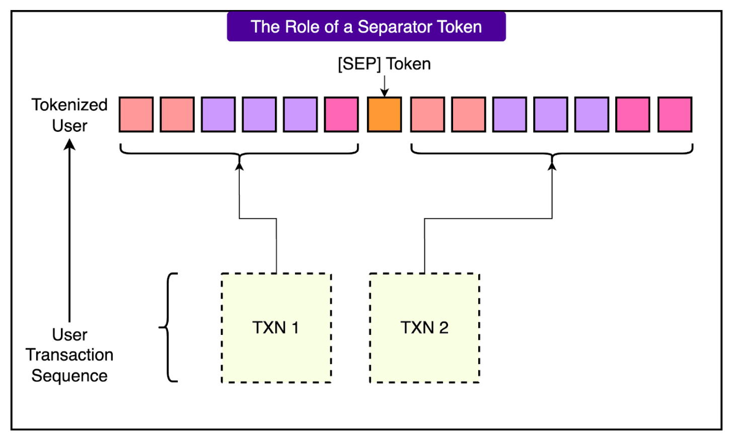 一旦每笔交易都以这种方式标记化,用户的完整交易历史记录就可以串联成一个序列,并用作转换器的输入。在交易之间插入分隔符以保留边界,并且序列会以固定的上下文长度截断,以保持在计算限制之内。
