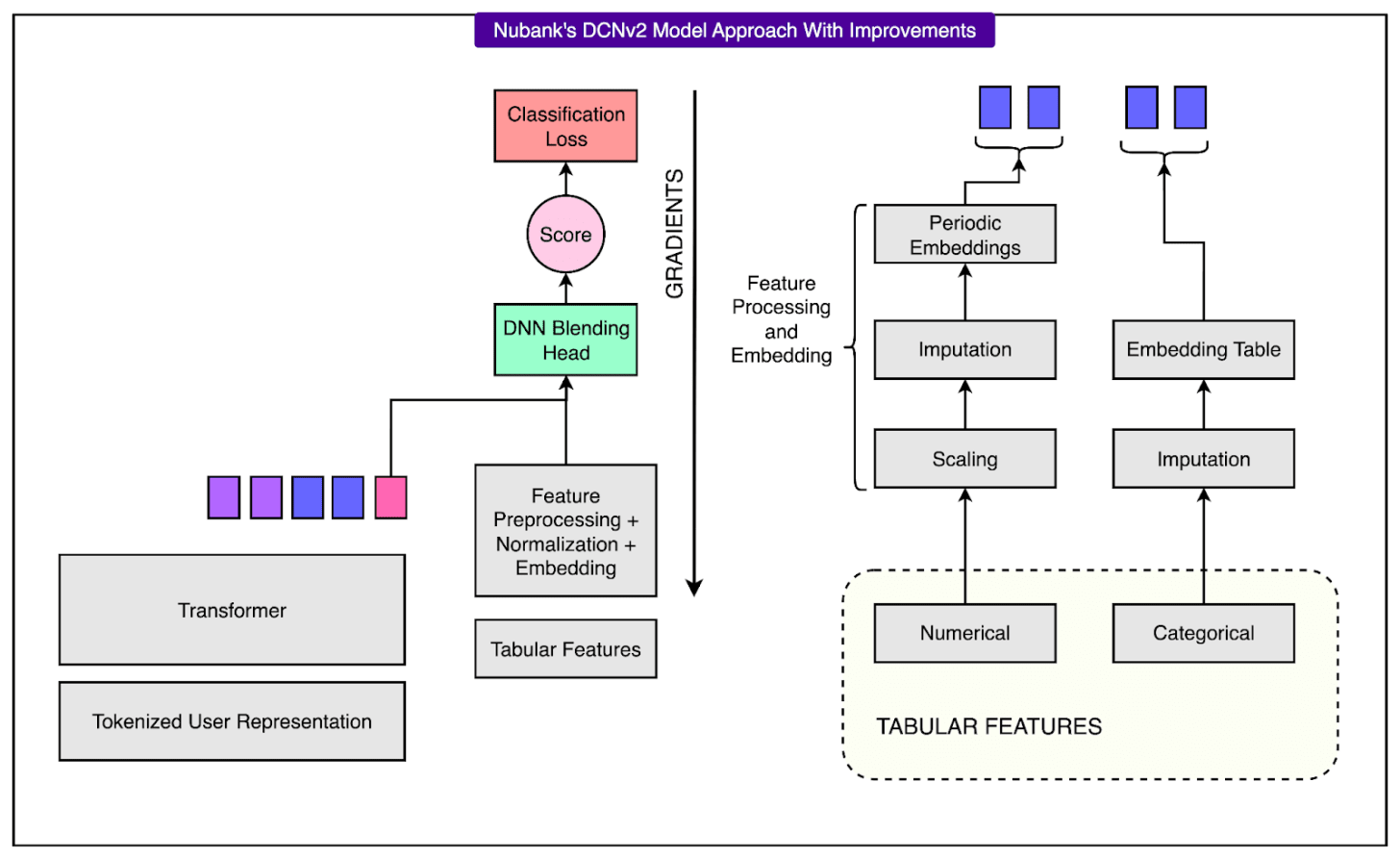 交易一旦被标记化,就会被传递到转换器模型中。Nubank 使用多种转换器变体进行实验和性能优化。