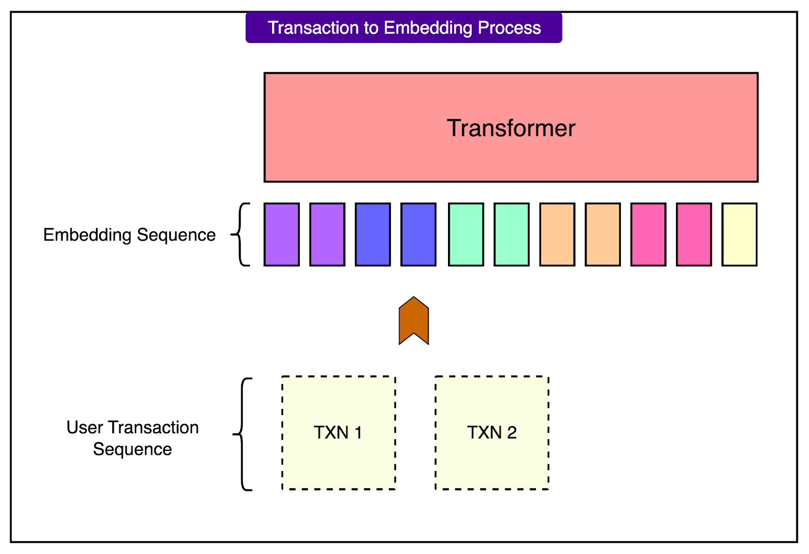 在该方法中,每个唯一的交易都会被分配一个数字 ID,类似于顺序推荐模型中使用的技术。然后,这些 ID 会使用查找表转换为嵌入。