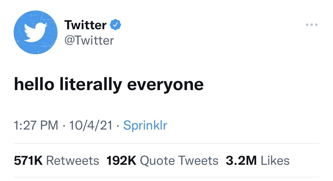 Today Twitter won a Silver Cannes Lion for this tweet. Huge recognition for just three words, I had to tweet about it! The day FB, Insta and WhatsApp went down, in a minute and in that moment, the team tweeted what became one of the most engaged tweets on Twitter, ever.