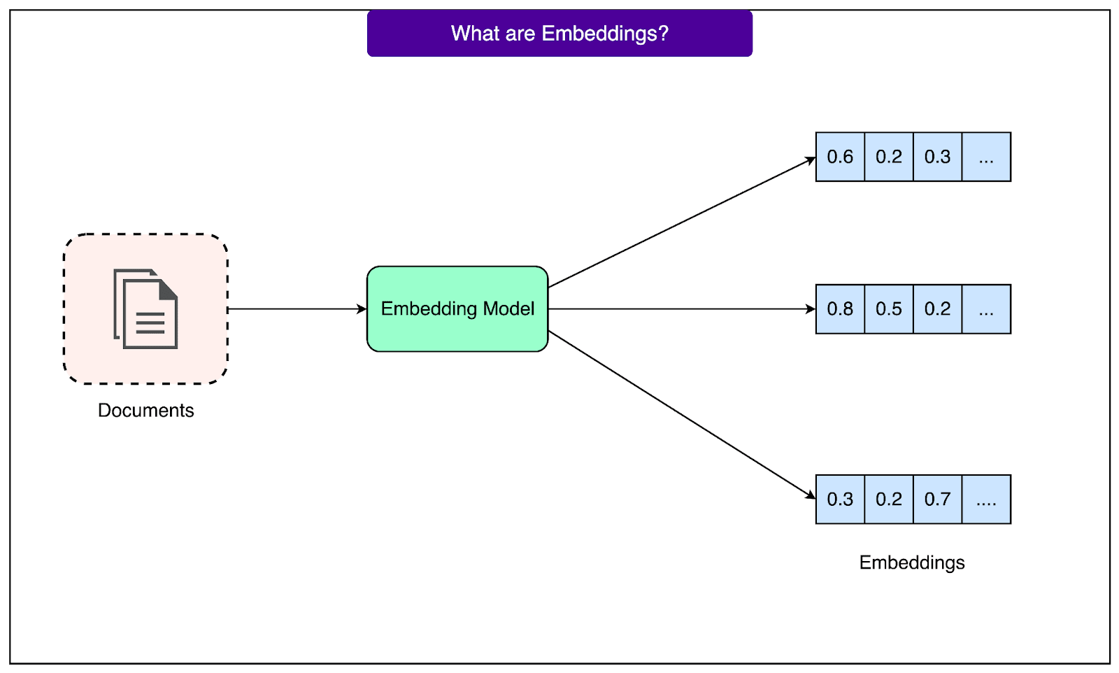 嵌入模型专门用于一项任务:将文本转换为有意义的数字。它无法生成文本、回答问题或进行对话。它只是读取文本并输出向量。这类模型相对较小、速度快,并且在单一任务上效率较高。
