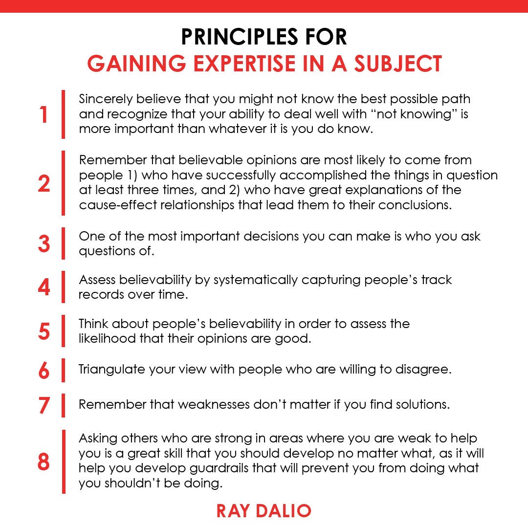 原推:Many of you have asked about principles for gaining expertise in a particular subject you’re interested in, so I wanted to share some of the principles that have helped me throughout my journey. #principleoftheday