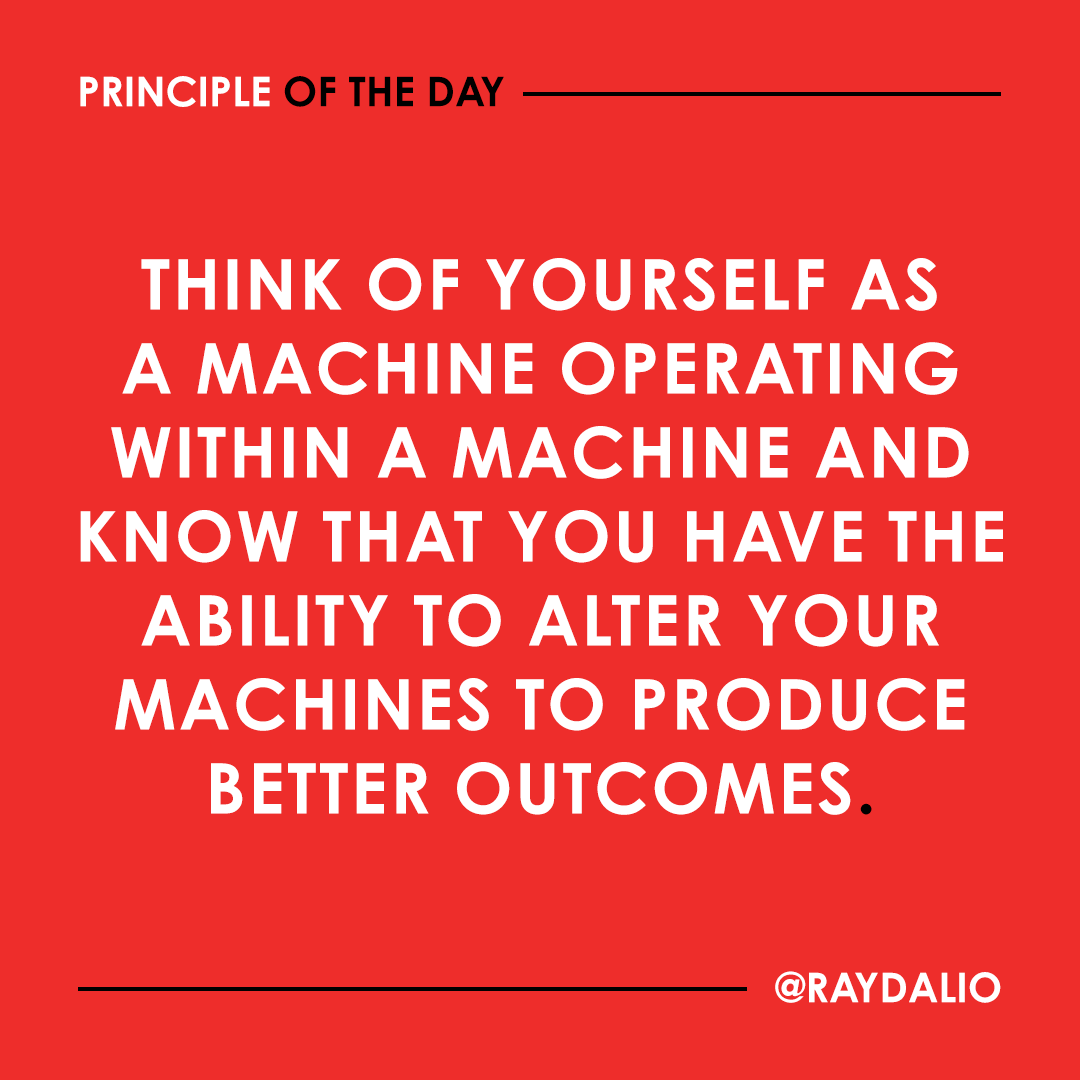 原推:You have your goals. I call the way you will operate to achieve your goals your machine. It consists of a design (the things that have to get done) and the people (who will do the things that need getting done). Those people include you and those who help you. #principleoftheday