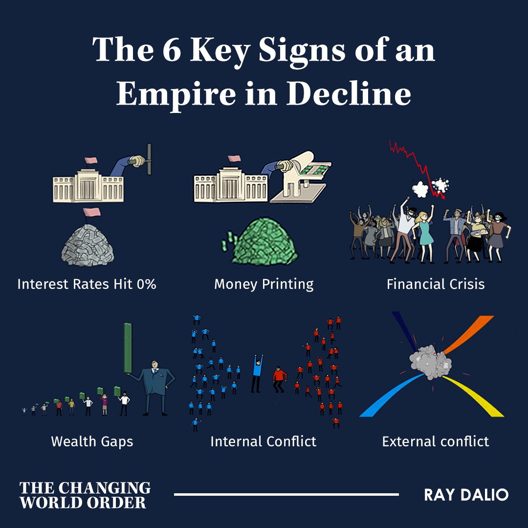 Ray Dalio: 历史告诉我们,当伟大的帝国垮台时,它们通常会因为类似的原因而垮台。 (1/3) Posted on 2022-04-20 原推:History shows us that when great empires fall, they generally fall for similar reasons. (1/3) https://twitter.com/RayDalio/status/1516472012398604290