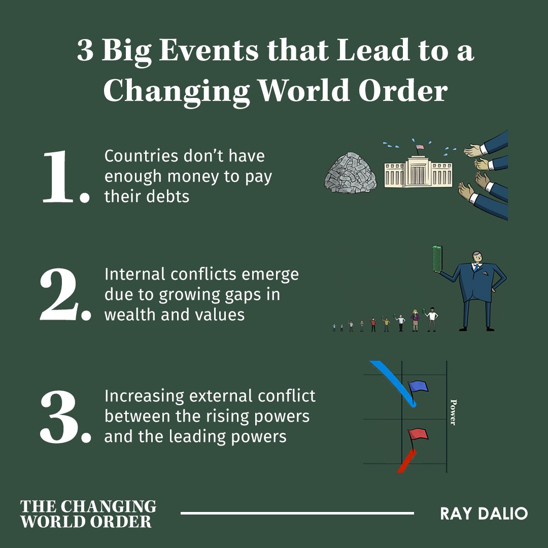 原推:Over the last few years, three big things that hadn’t happened in my lifetime prompted me to do the study that led me to publish Principles for Dealing with the Changing World Order. (1/6)