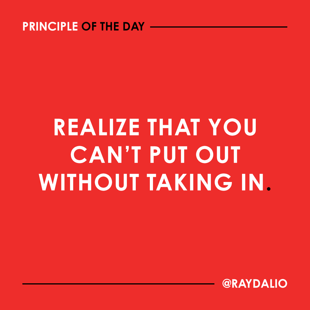 原推:Most people seem much more eager to put out (convey their thinking and be productive) than to take in (learn). That’s a mistake even if one’s primary goal is to put out, because what one puts out won’t be good unless one takes in as well. #principleoftheday