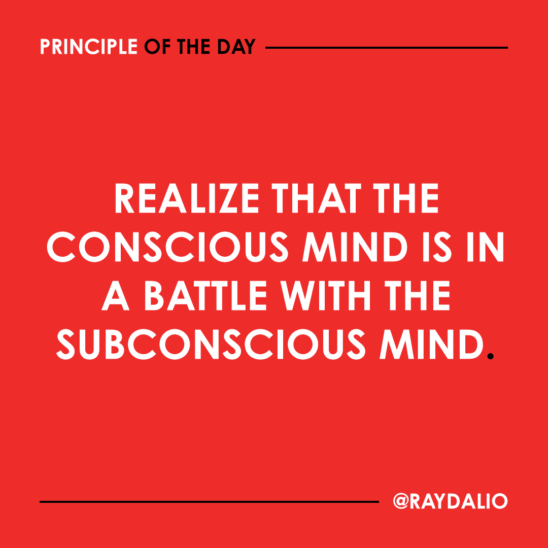 原推:If you take nothing else away from these next series of principles, be aware of your subconscious—of how it can both harm you and help you, and how by consciously reflecting on what comes out of it, perhaps with the help of others, you can become happier and more effective.