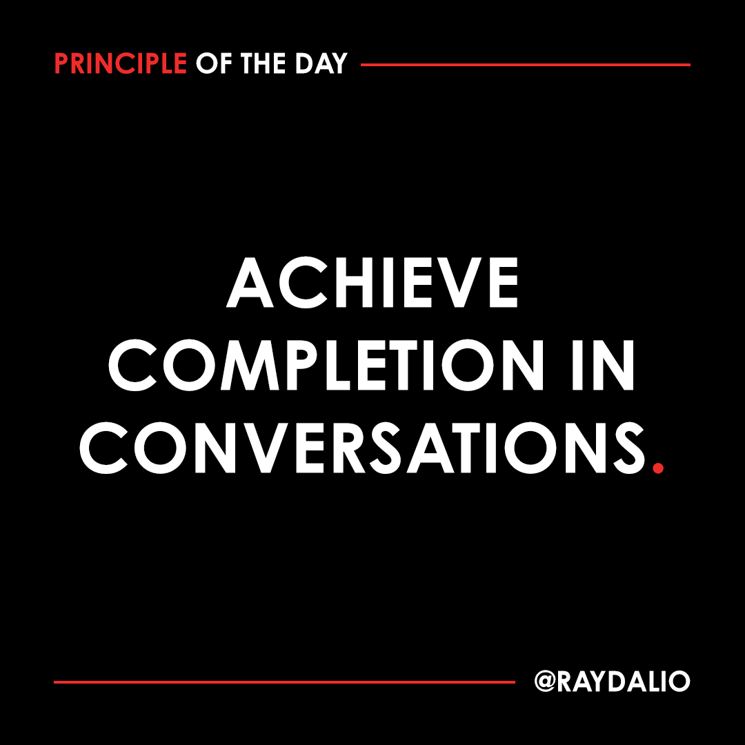 原推:The main purpose of discussion is to achieve completion and get in sync, which leads to decisions and/or actions. Conversations that fail to reach completion are a waste of time. #principleoftheday (1/4)