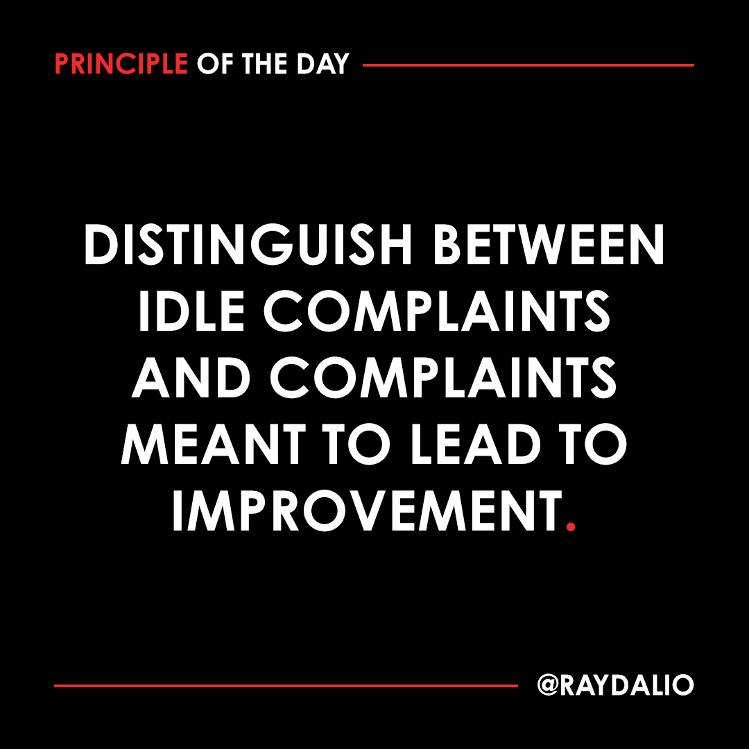 原推:Many complaints either fail to take into account the full picture or reflect a closed-minded point of view. They are what I call “chirping,” and are generally best ignored. But constructive complaints may lead to important discoveries. #principleoftheday