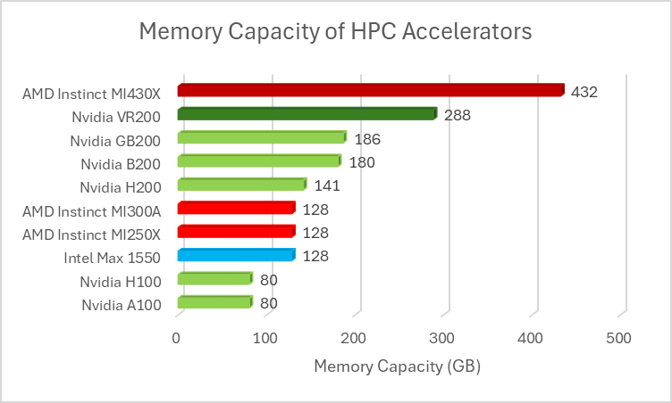 第二个优势是,MI430X 的 HBM 容量几乎是 AMD 先前加速器的 3.5 倍,比英伟达即将推出的 Rubin 的 HBM 容量高出 50%,这意味着单个 MI430X 可以容纳更大的数据集。
