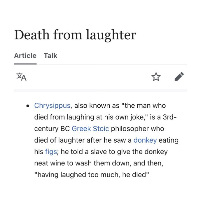 2) A Greek philosopher legit died at his own joke